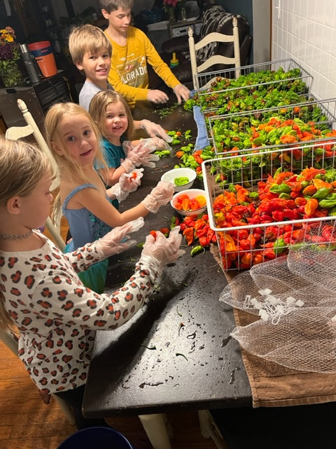 We have fun with growing peppers. We pick interesting varieties and love to blend them together to create the best flavors for our products!